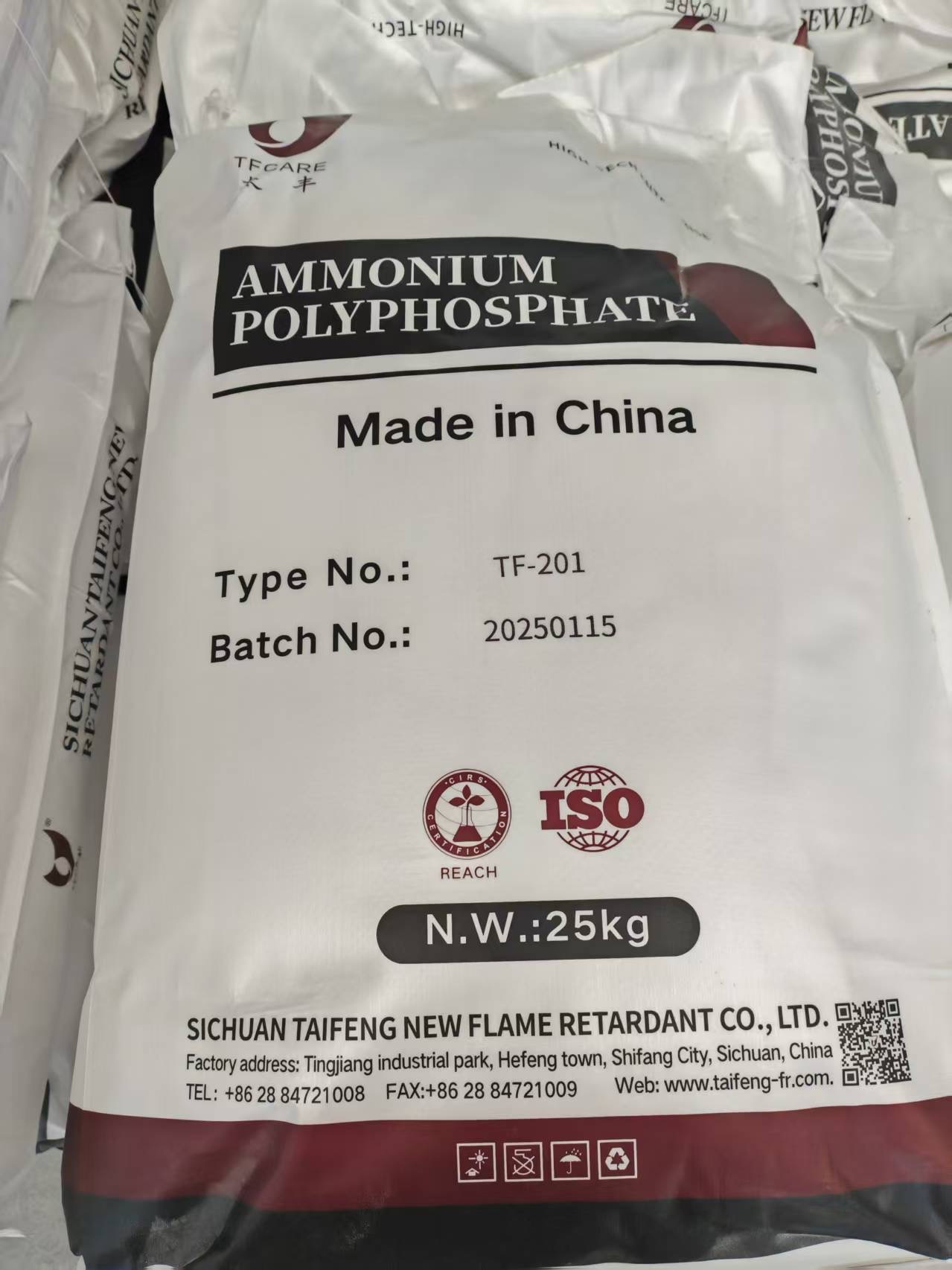 Shifang Taifeng è un produttore di Polifosfato di Ammonio (APP) con 21 anni di esperienza. L'APP è un ritardante di fiamma privo di alogeni ampiamente utilizzato perVernici Intumescenti, gomma, PP, rivestimenti ignifughi espandibili.